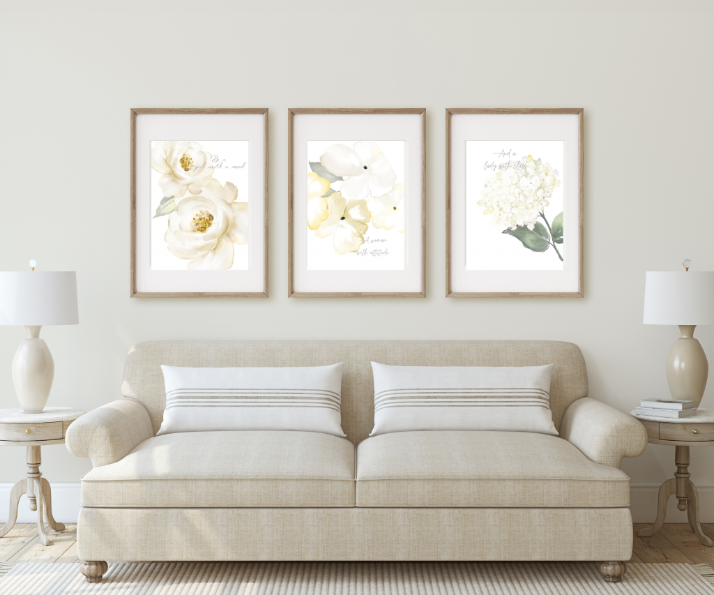 * Width: for all pieces we recommend leaving 1″-3″ space between each picture when hung, for the best airy but tied-together look!